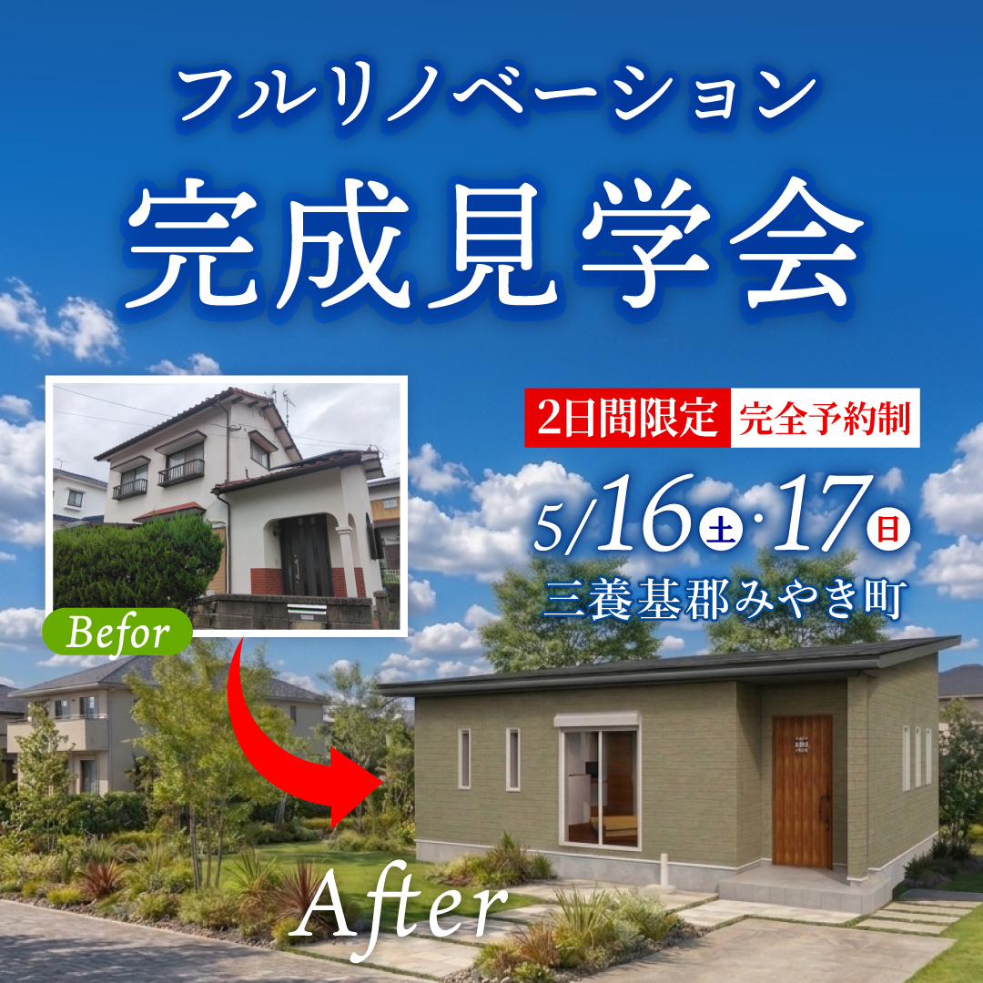 一軒まるごとリノベーションでは、3ヶ月~かかることがありますので、仮住まいをしていただく必要があります。